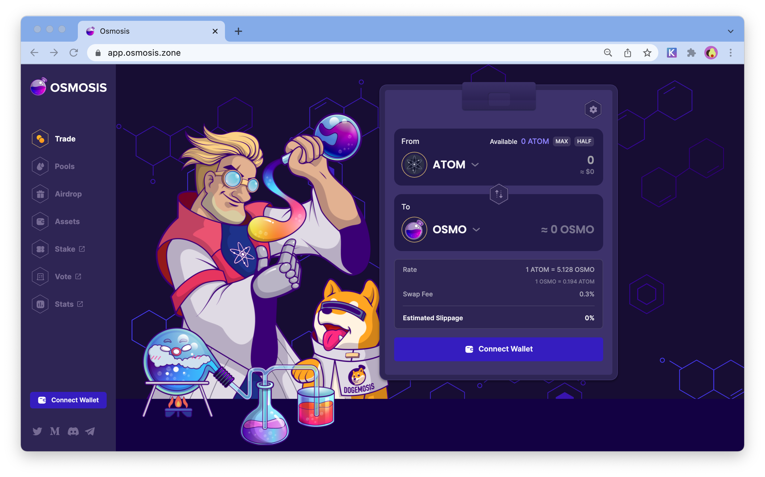 The Osmosis Zone Apps Page is a suite of dApps that are tightly integrated into the Osmosis AMMs and IBC routing capabilities. Many developer teams are building index tokens, options, perps, stops and limit orders, automated trading, yield vaults, NFTs, and more. With new apps and features like stableswap, concentrated liquidity, rate-limiting, in-protocol MEV capture, and more going live all the time, Osmosis is continuing to expand its moat as the only full-service, cross-chain exchange and DeFi hub, one that rivals the smooth user experience of a CEX without compromising on the benefits of decentralized finance – self-custody, trust-minimized transactions, direct on-chain access, and privacy.